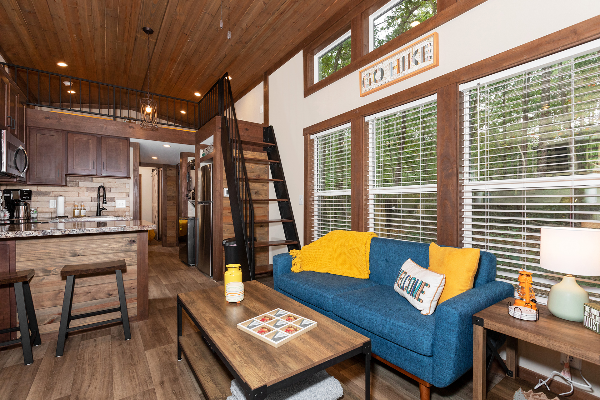The Bankhead Park Model is perfect for your next family vacation or weekend adventure. With room for eight, you won’t have to worry about leaving your four-legged friends behind. The Alexander’s thoughtful, farmhouse design features built-in closets, bunk beds and a wide storage ladder leading into the spacious sleeping loft.