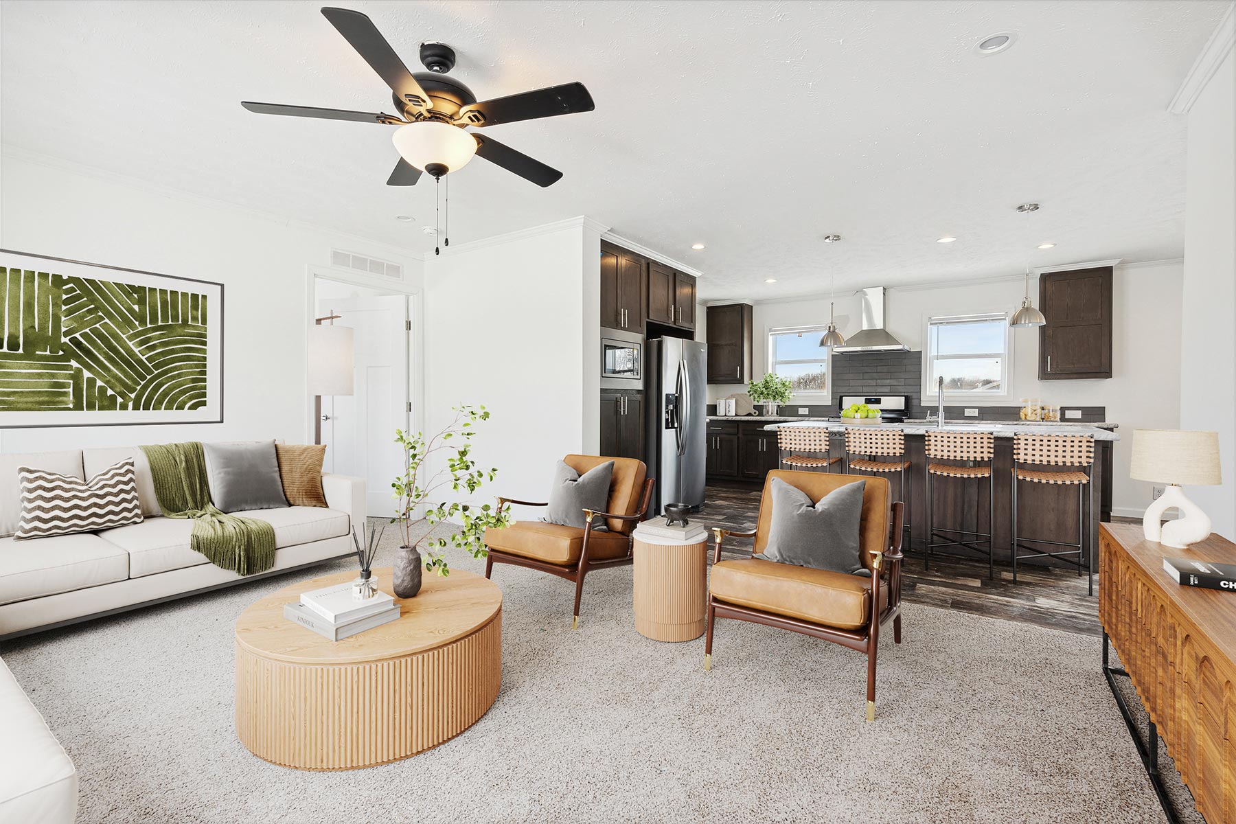 The Millcreek / N600 built by Skyline Homes is a stunning manufactured home with a spacious interior. With a square footage of 1,493, this model features 3 bedrooms and 2 bathrooms, providing ample space for families of all sizes. The home has a beautiful open-concept living area, a modern kitchen with stainless steel appliances, and an inviting dining area. The bedrooms are cozy and comfortable, with plenty of natural light, and the bathrooms are designed with contemporary fixtures and finishes. The N600 offers a perfect combination of style, comfort, and functionality, making it an ideal choice for anyone looking for a new home