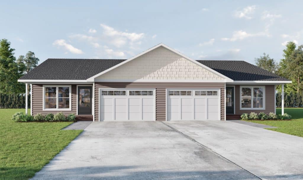 The Timber is a thoughtfully designed single-level duplex offering comfort and convenience in every detail. Each unit features three bedrooms, including a primary suite with a private bathroom and walk-in closet, plus a second full bathroom. The compact kitchen, dining, and living areas create an efficient open-plan layout ideal for everyday living. A single-car garage with a walk-through mudroom adds practical functionality to this smartly designed home.